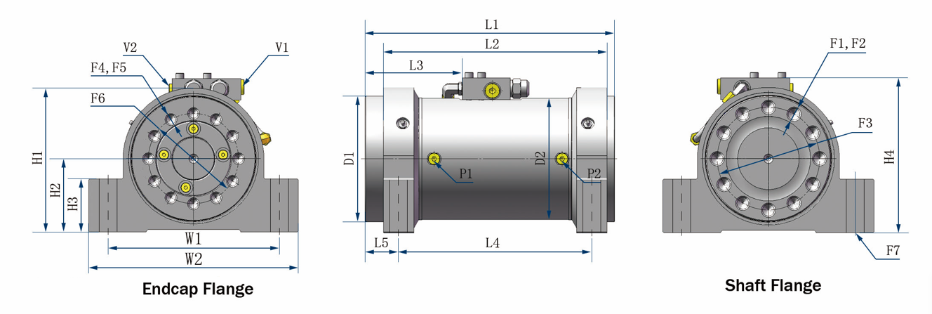 | F6 볼트 원 직경, 엔드캡 플랜지 MM | 108 | 120 | 133 | 150 | 170 | 190 | 210 | 230 |